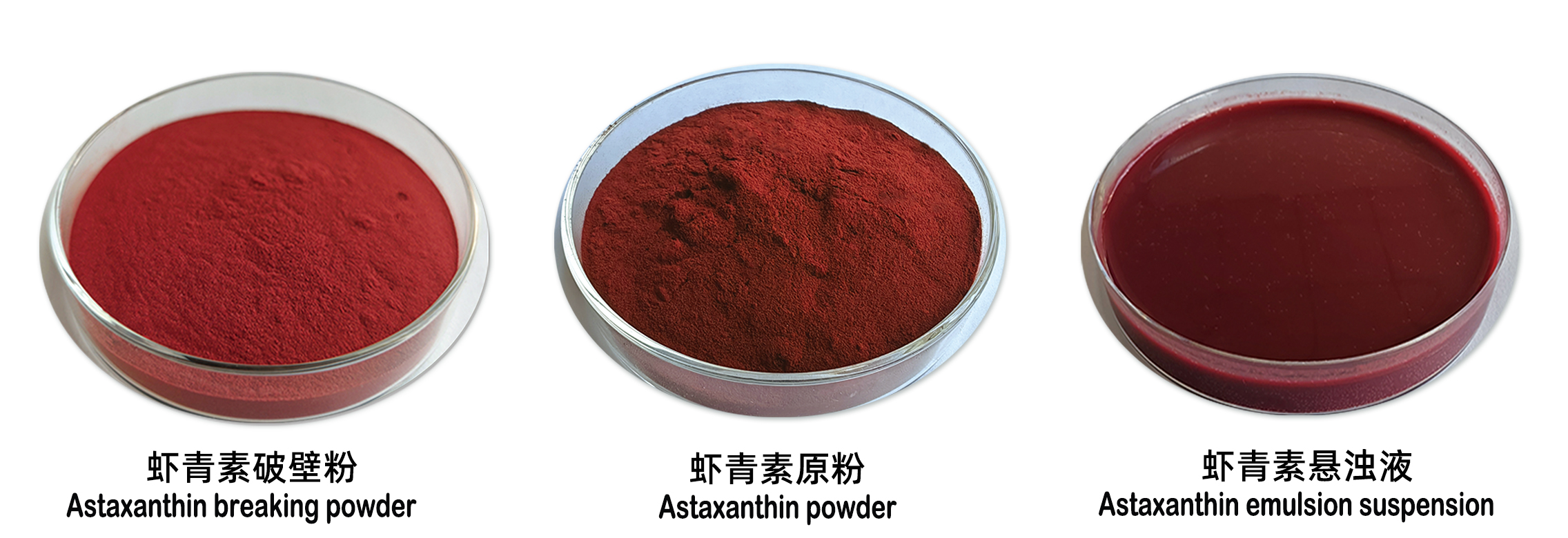 以酿酒酵母为底盘,以左旋天然游离虾青素发酵液为原料,经低温研磨和乳化悬浮而得到的含量高,抗氧化性强,易吸收,稳定性强,耐高温(120 ℃下加工30 min留存率大于90%)的虾青素产品。左旋天然游离虾青素发酵液,经低温研磨和乳化悬浮而得到的一种紫红色的粘稠液体。