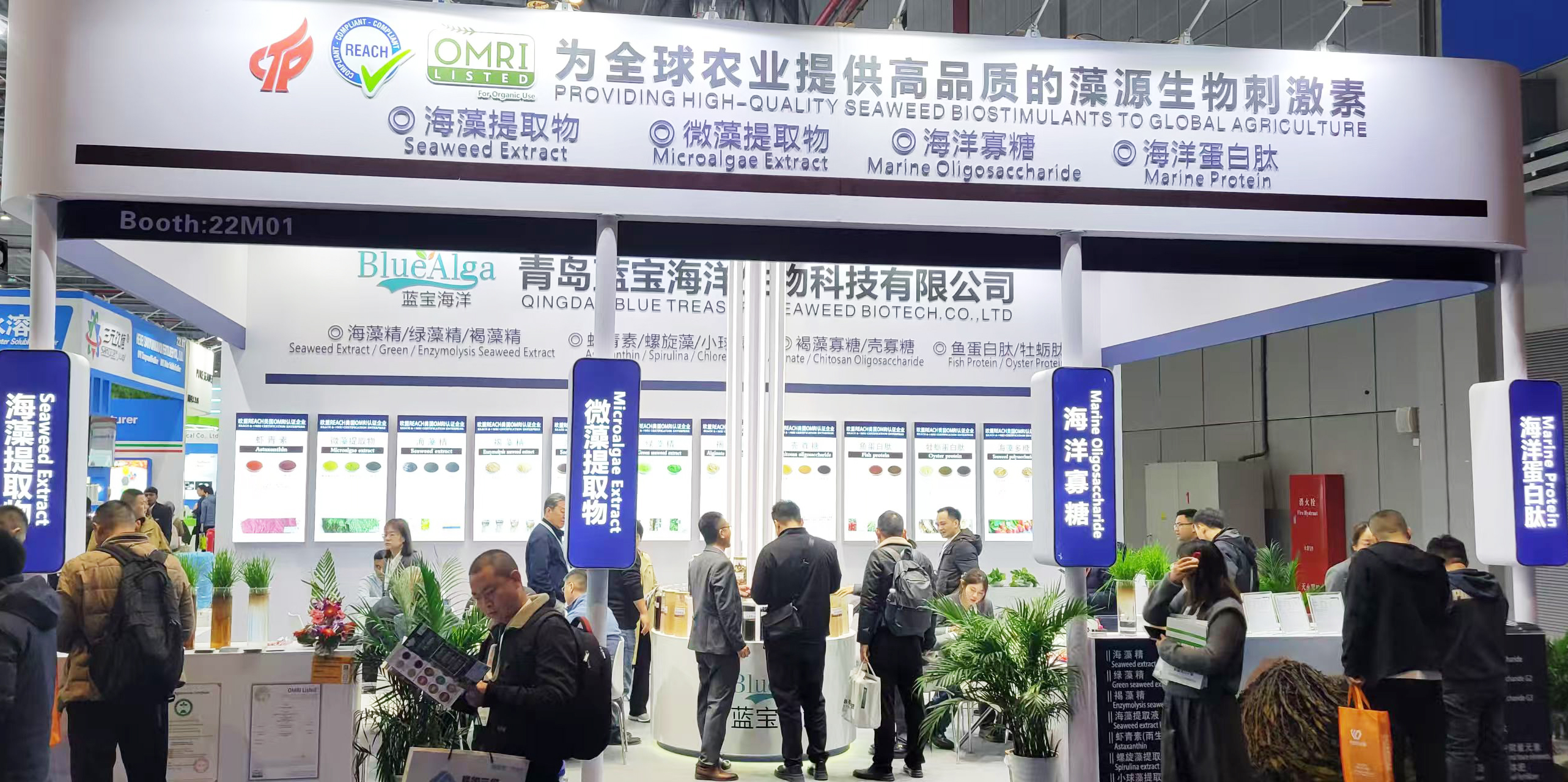 以南非树皮藻、爱尔兰泡叶藻、智利公牛藻为原料,经低温萃取和双重酶解工艺,反应条件温和,藻源活性物质多,分子量小,复配性强(与钙镁离子复配不沉淀),酸碱耐受度高。